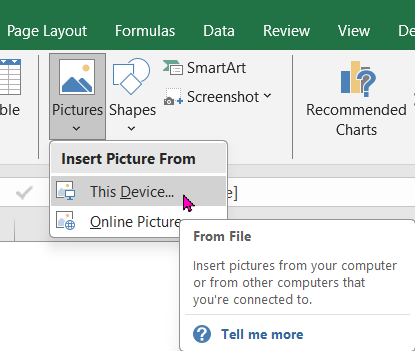 Go to Pictures | Insert Picture from | This Device | From File en kies je handtekening.