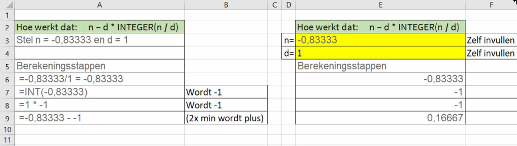 Hoe werkt dat: n – d * INTEGER(n / d)