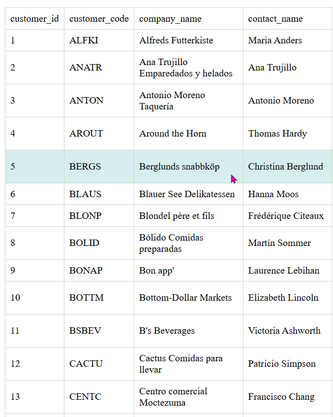 strHTML_Code = "<!DOCTYPE html><html><head><style>table{border-collapse:collapse;width:100%}td,th{padding:8px;text-align:left;border-bottom:1px solid #DDD}tr:hover{background-color:#D6EEEE}</style></head><body><h2>Hoverable Table</h2><p>Move the mouse over the table rows to see the effect.</p><table>"