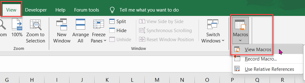 - Druk op de toetscombinatie ALT + Q om de Editor af te sluiten en terug te keren naar Excel