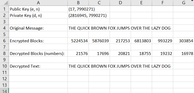 ws.Range("A9").Value = "Decrypted Blocks (numbers):"